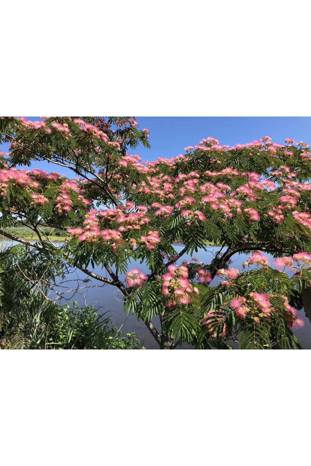 Albízia (Albizia) je dekoratívny okrasný strom z čeľade bôbovitých (Fabaceae). Je známa jemnými, dlhými bipinnatými listami a úchvatnými ružovými „chlpatými“ kvetmi, ktoré kvitnú v lete a pripomínajú hodvábne chĺpky. Listy sú výrazné a pri západe slnka sa zatvárajú, čo pôsobí ako „spánok“ rastliny. Albízia sa vysádza pre svoj exotický vzhľad a dekoratívnu korunu v záhradách a parkoch