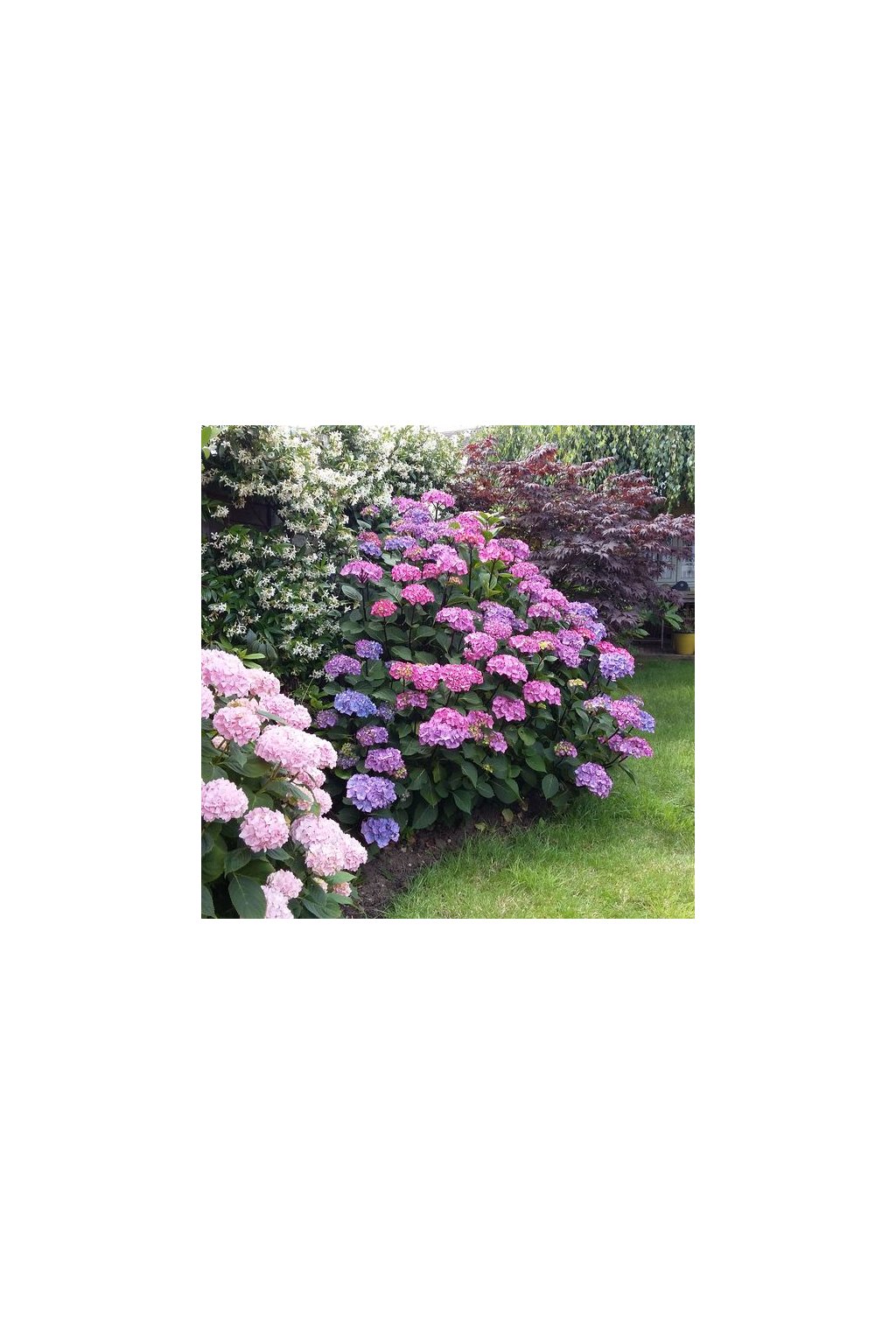 "Hortenzia Kalinolistá (Hydrangea macrophylla) je opadavý ker alebo krík z čeľade Hydrangeaceae, známy svojimi veľkými kvetmi v rôznych odtieňoch modrej, ružovej alebo bielej farby. Tento kultivar je obľúbený pre svoju nádhernú kvetinovú produkciu a pôsobivú estetiku.